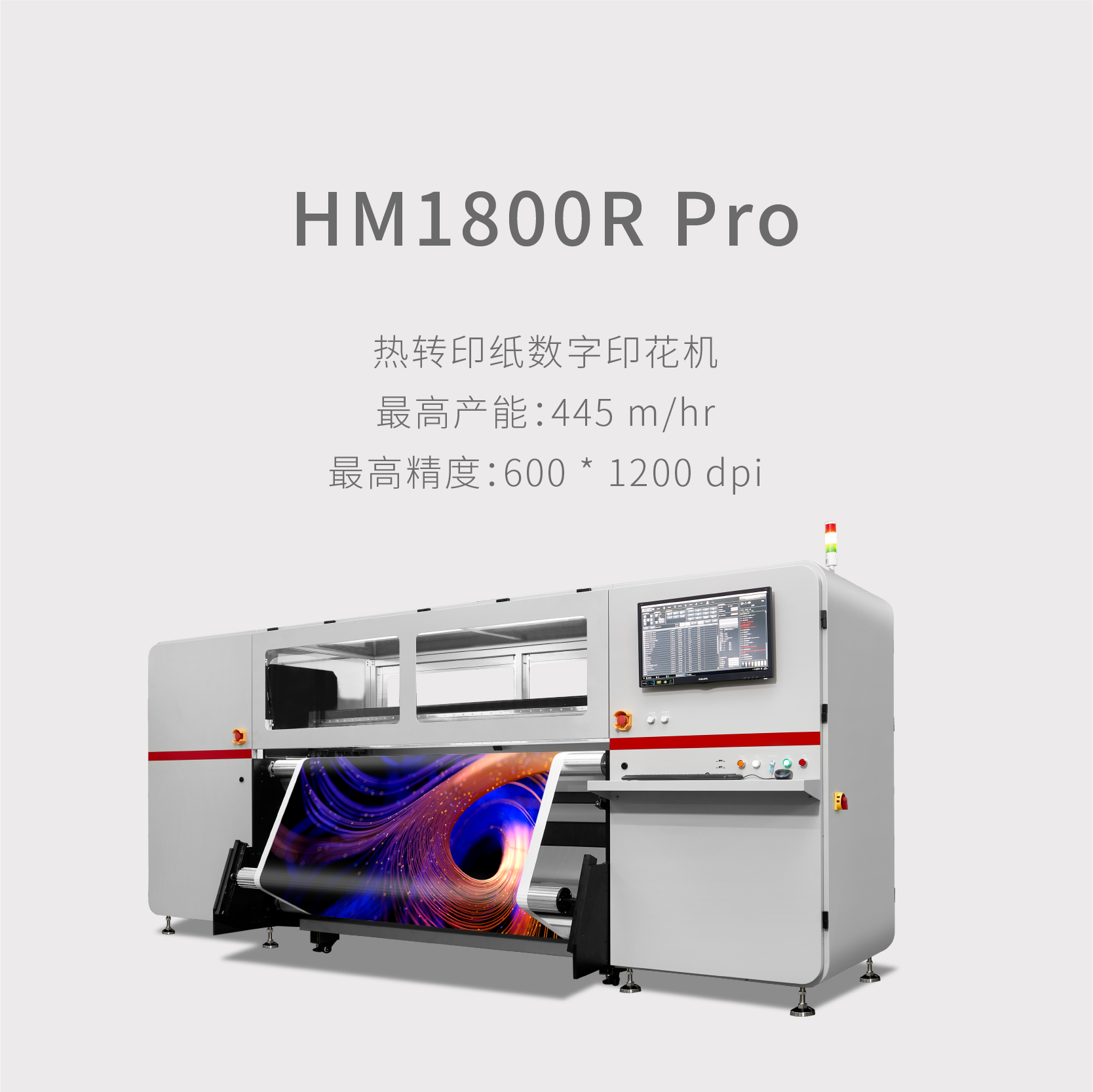 全新紡織印花導(dǎo)帶直噴機(jī)最高產(chǎn)能:1786㎡/hr 滿配64個工業(yè)級噴頭